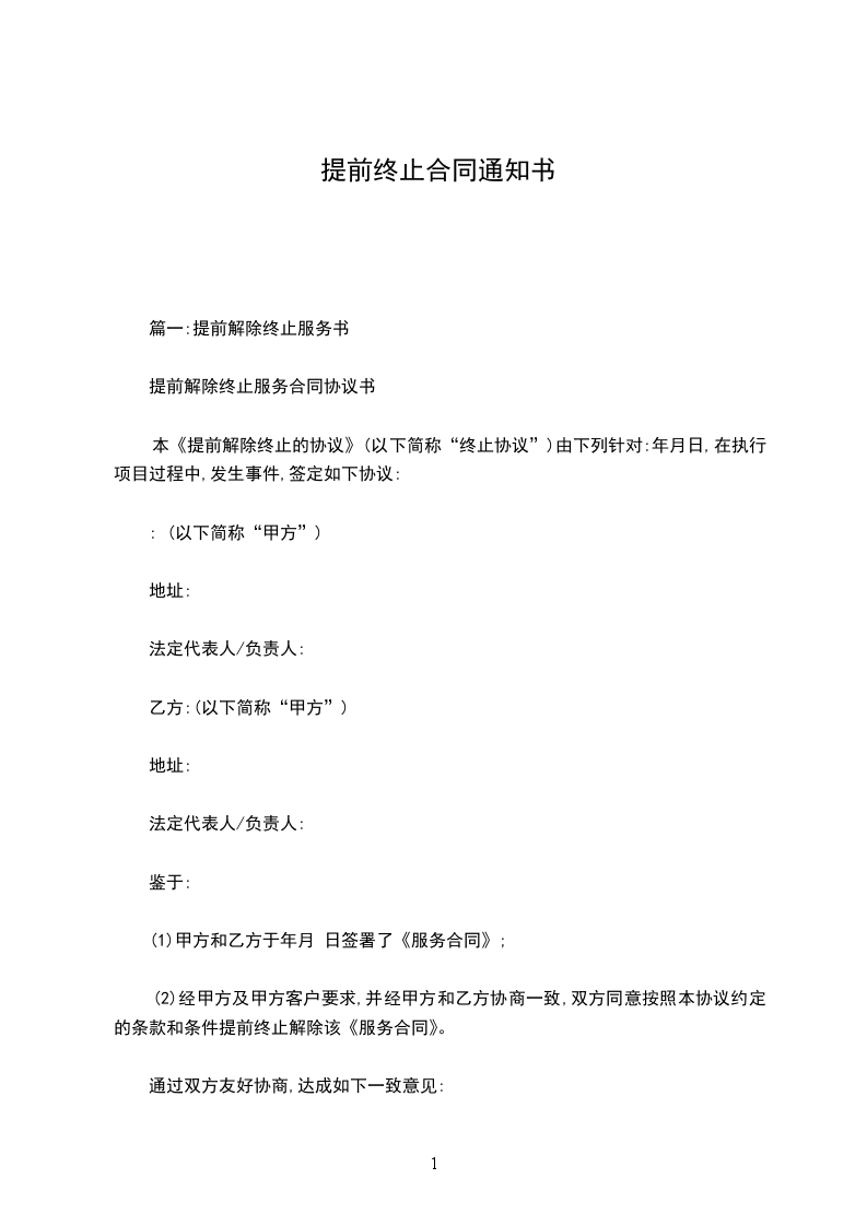 篇一:提前解除终止服务书