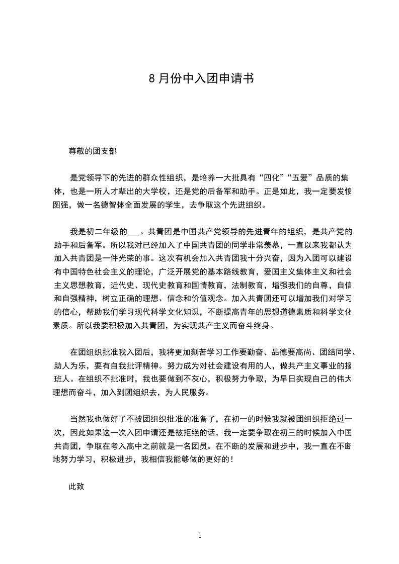 入团申请书从内容上看,一般要有以下几层意思
