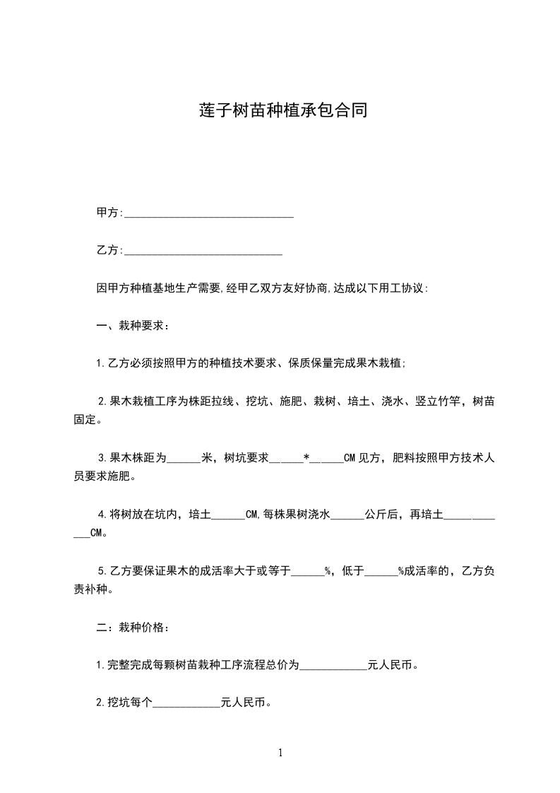 一、甲方自愿和乙方合作种植果树,土地属于甲方自己所有的荒地__________________亩,乙方出资一切种植果树的开支。共同发展林产业。