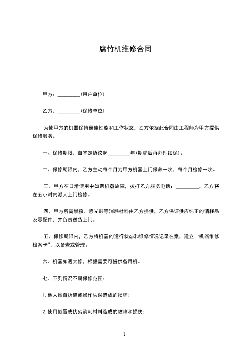 4、排除故障时限要求:无论合同货物质保期是否届满,如合同货物出现故障时,乙方接到通知后______小时做出响应,______小时内给予技术支持或到达现场维修排除故障。