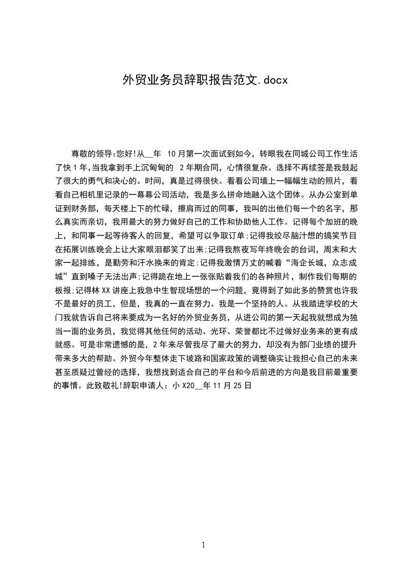 你好!当你看到我这封辞职报告的时候,说明我已经下定决心要走了。