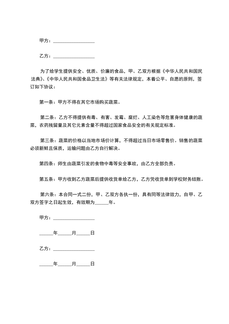 为确保人民身体健康,卖方方必须按照蔬菜用药规定施用农药,严禁在蔬菜地使用剧毒农药。对药性、肥气未脱的蔬菜严禁出土上市。