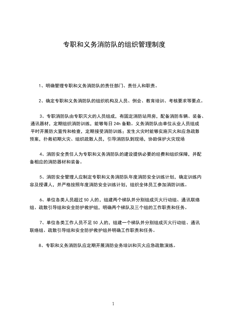 1、明确管理专职和义务消防队的责任部门、责任人和职责。