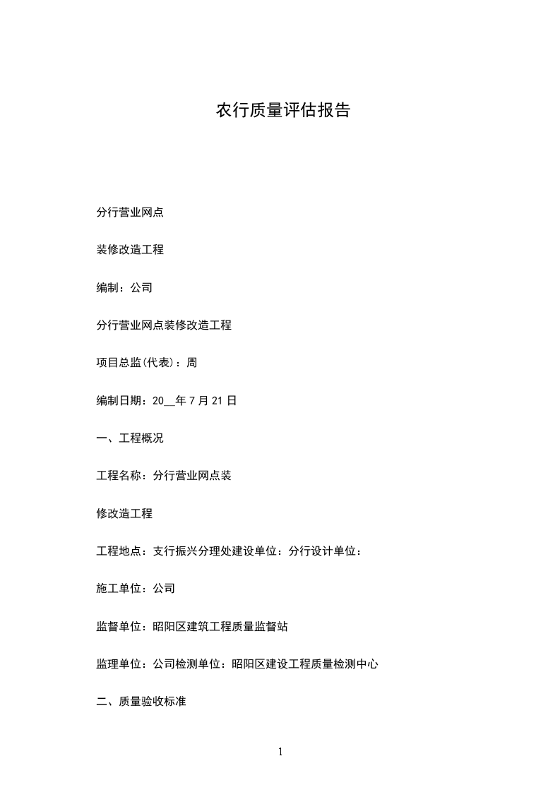 根据《建筑工程施工质量验收规范》、《建筑工程施工质量验收评定标准》GB503001.4.1,1.4.2,1.4.3,1.4.4条工程质量评定规定:分行营业网点装修改造工程质量评定等级合格。