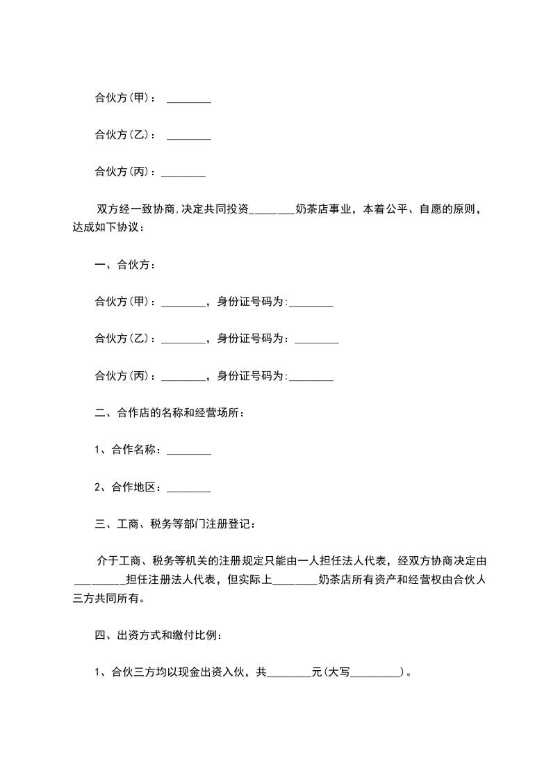2、经双方协商,乙方需以现金及劳务方式进行投资,现金投资人民币______万元,在本协议签订时一次性支付给甲方。同时,乙方应保证每天遵守合伙组织的工作时间正常上下班,并依照双方的约定负责培训新学员以及皮革的清洗保养业务。