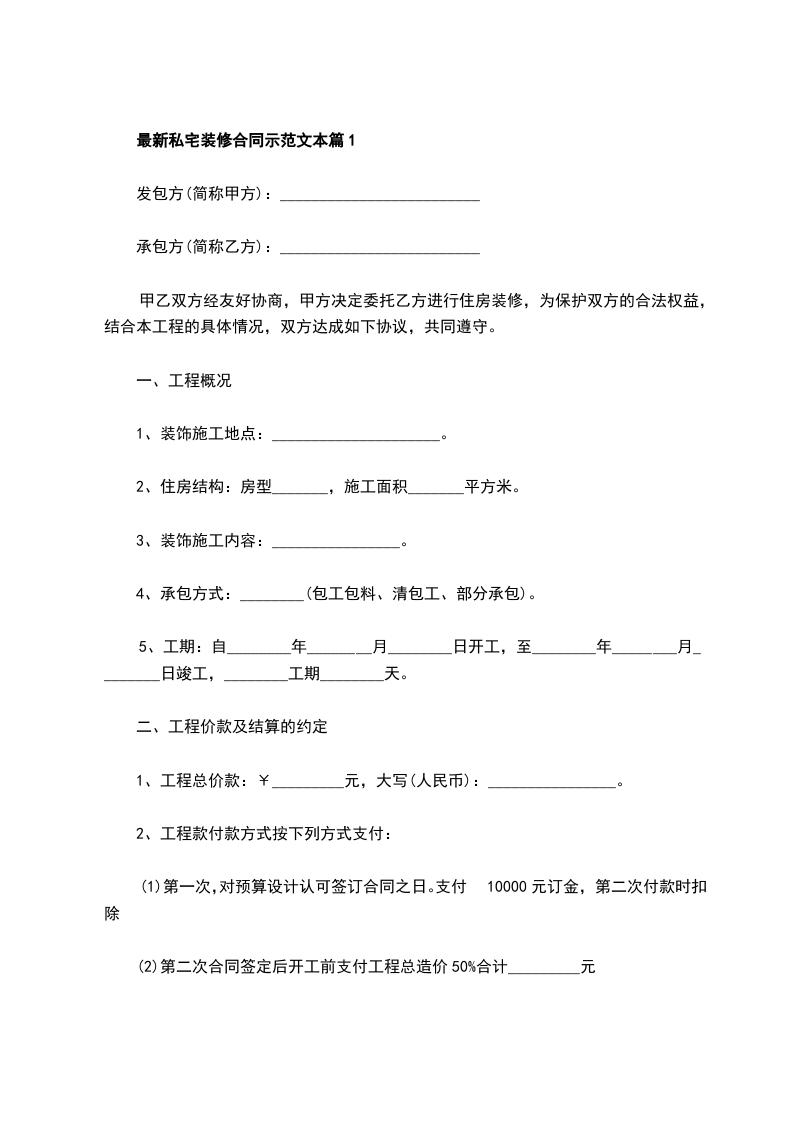 最新私宅装修合同示范文本篇2
