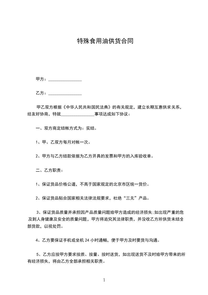 4、乙方要保证手机或坐机24小时通畅,便于甲方及时要货与沟通。