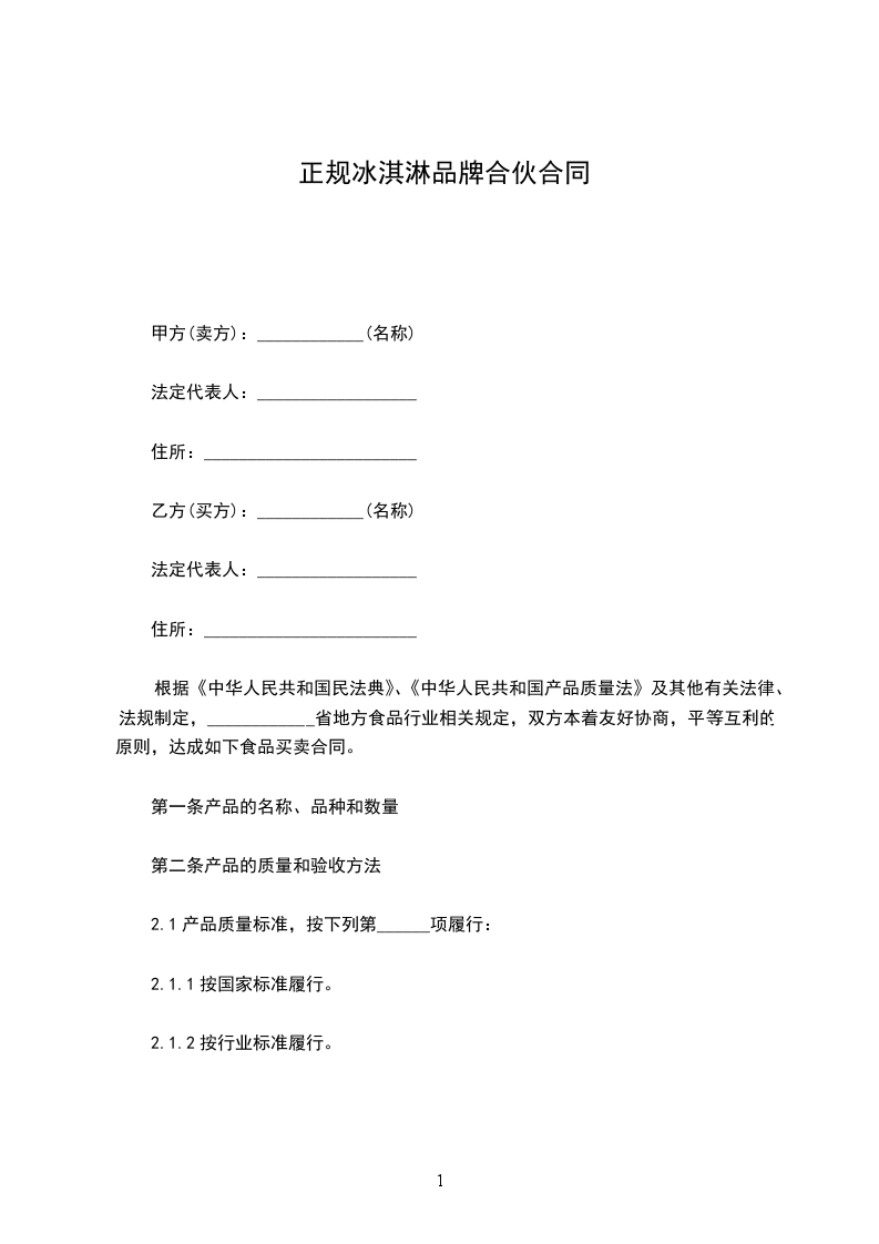 根据《中华人民共和国民法典》、《中华人民共和国产品质量法》及其他有关法律、法规制定,____________省地方食品行业相关规定,双方本着友好协商,平等互利的原则,达成如下食品买卖合同。