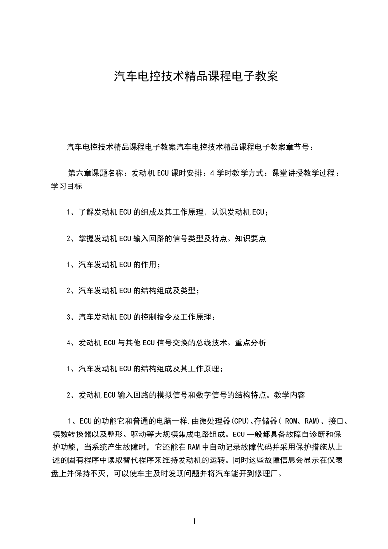 汽车电控技术精品课程电子教案汽车电控技术精品课程电子教案章节号: