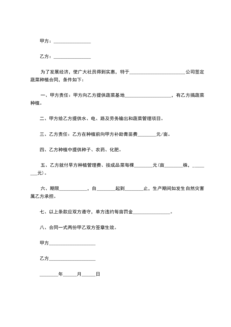 六、下种及移栽时间:乙方于______年___月____日前下种,_____月______日前移栽。