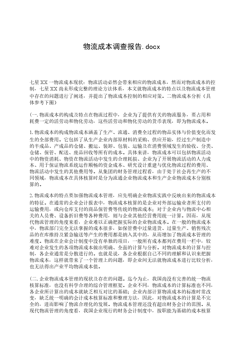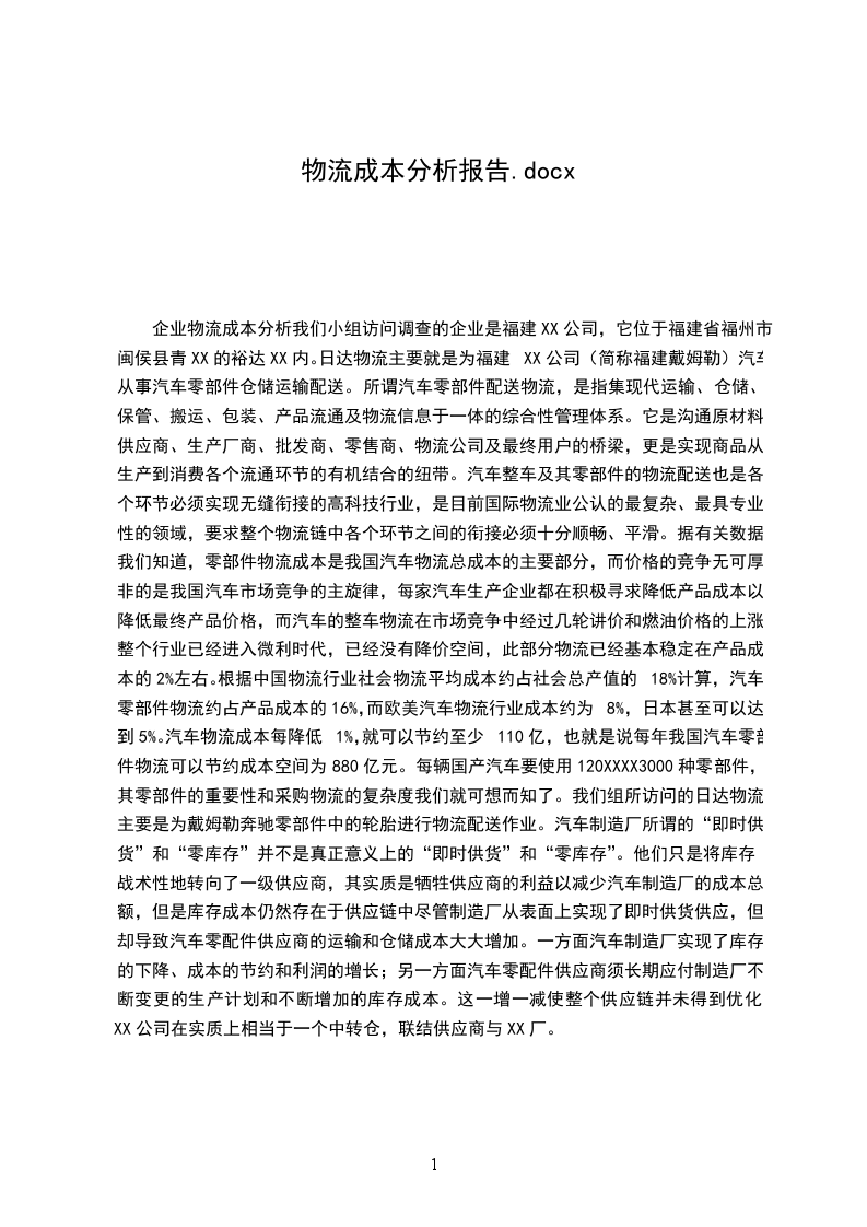 润发物流成本分析报告