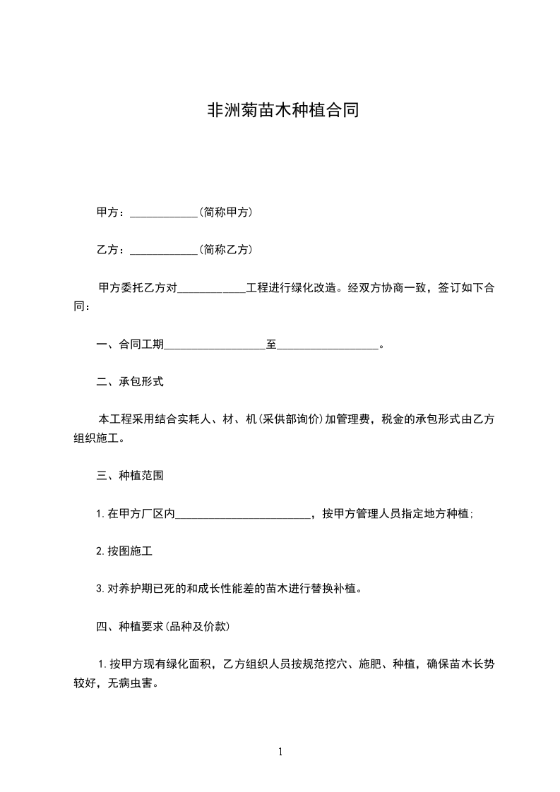 1.按甲方现有绿化面积,乙方组织人员按规范挖穴、施肥、种植,确保苗木长势较好,无病虫害。