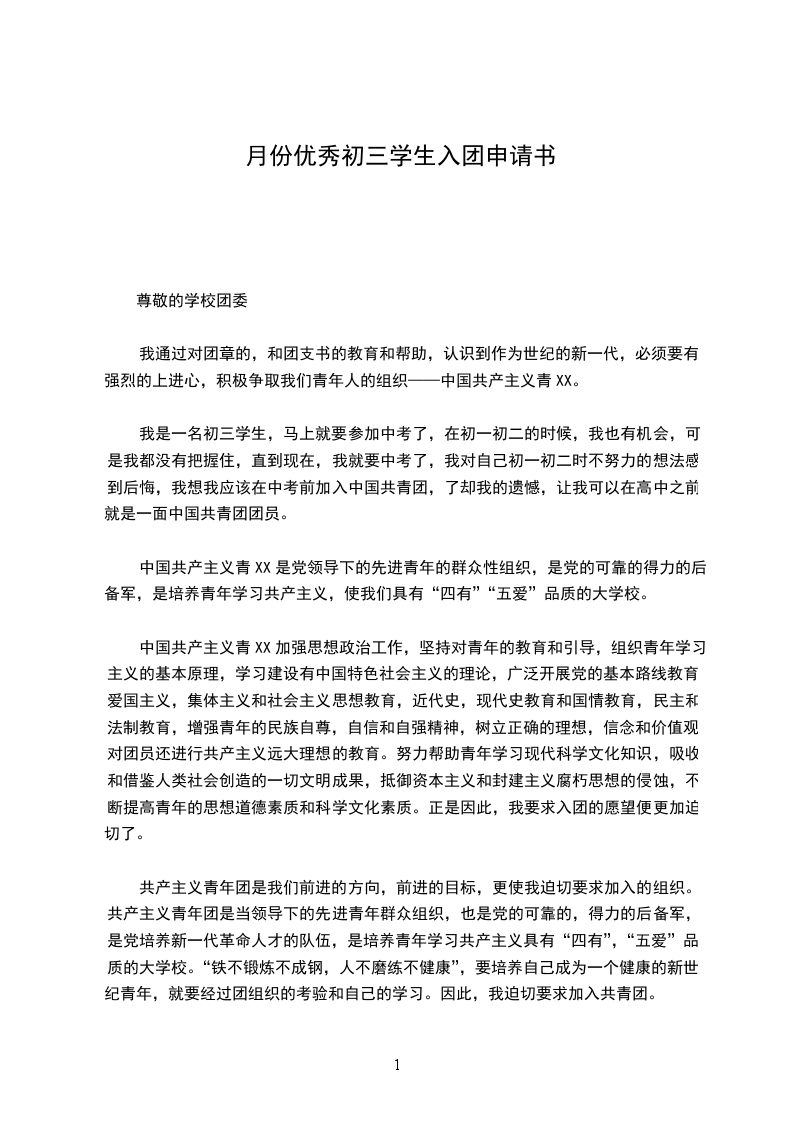 希望团组织认真考虑和审查我,给我一次机会,加入团的大家庭,为团作贡献。