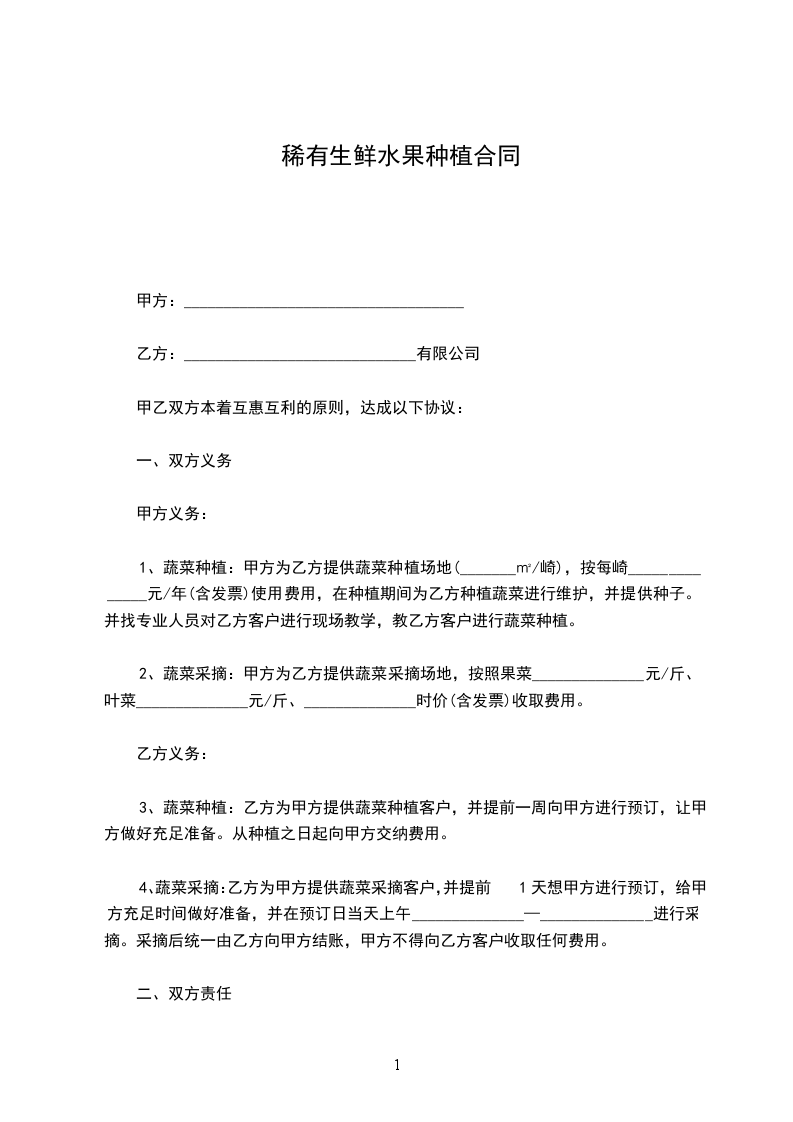 1、合同期内甲方集体按果园土地面积所收费用由乙方经营所需需用由乙方承担支付。