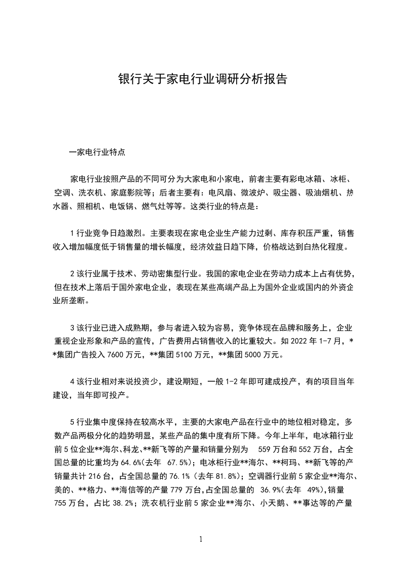 1行业竞争日趋激烈。主要表现在家电企业生产能力过剩、库存积压严重,销售收入增加幅度低于销售量的增长幅度,经济效益日趋下降,价格战达到白热化程度。