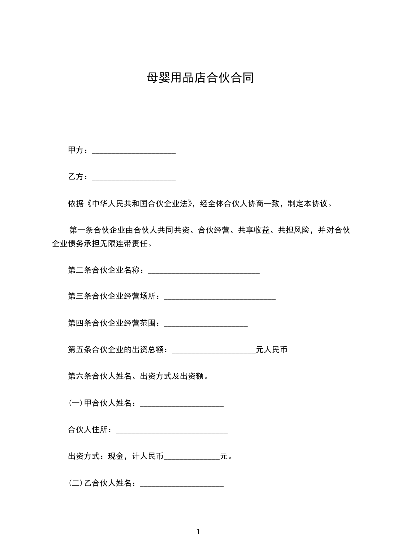甲方(合伙人):_______________乙方(合伙人):____________