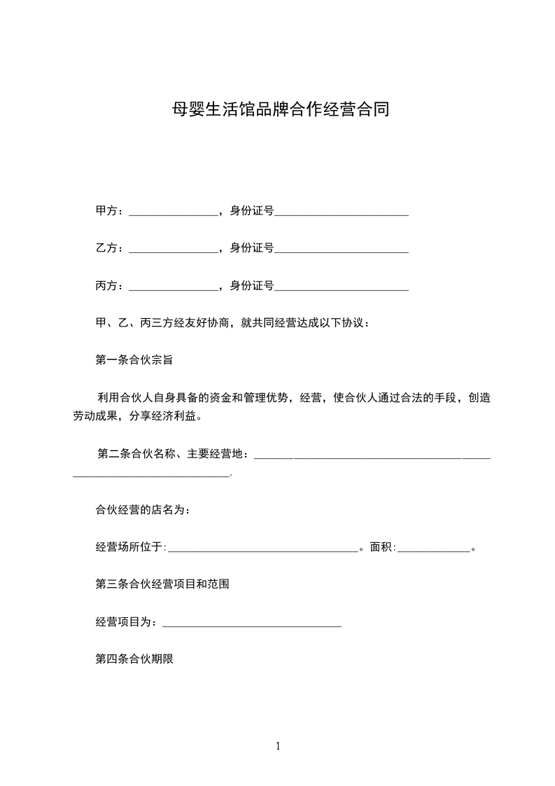 1、甲方提供_______________作为甲、乙双方成立、经营的________________品牌。