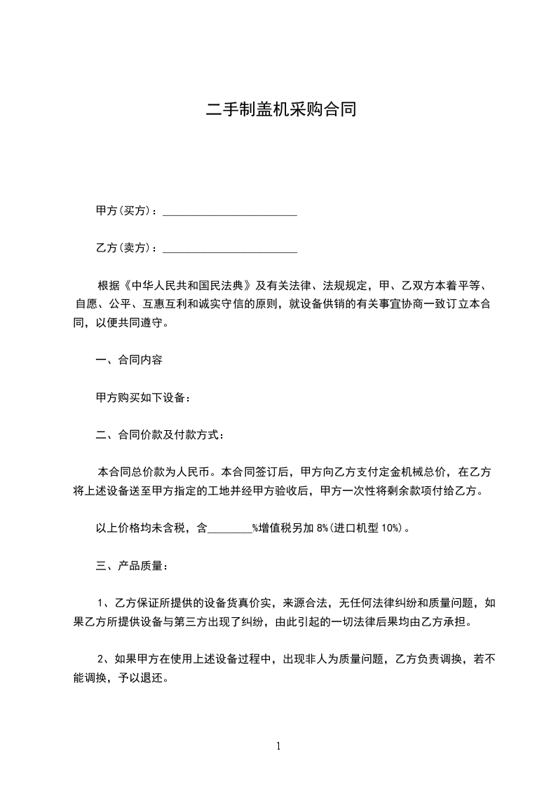 根据《中华人民共和国民法典》及有关法律、法规规定,甲、乙双方本着平等、自愿、公平、互惠互利和诚实守信的原则,就设备供销的有关事宜协商一致订立本合同,以便共同遵守。