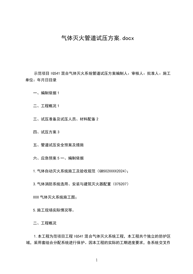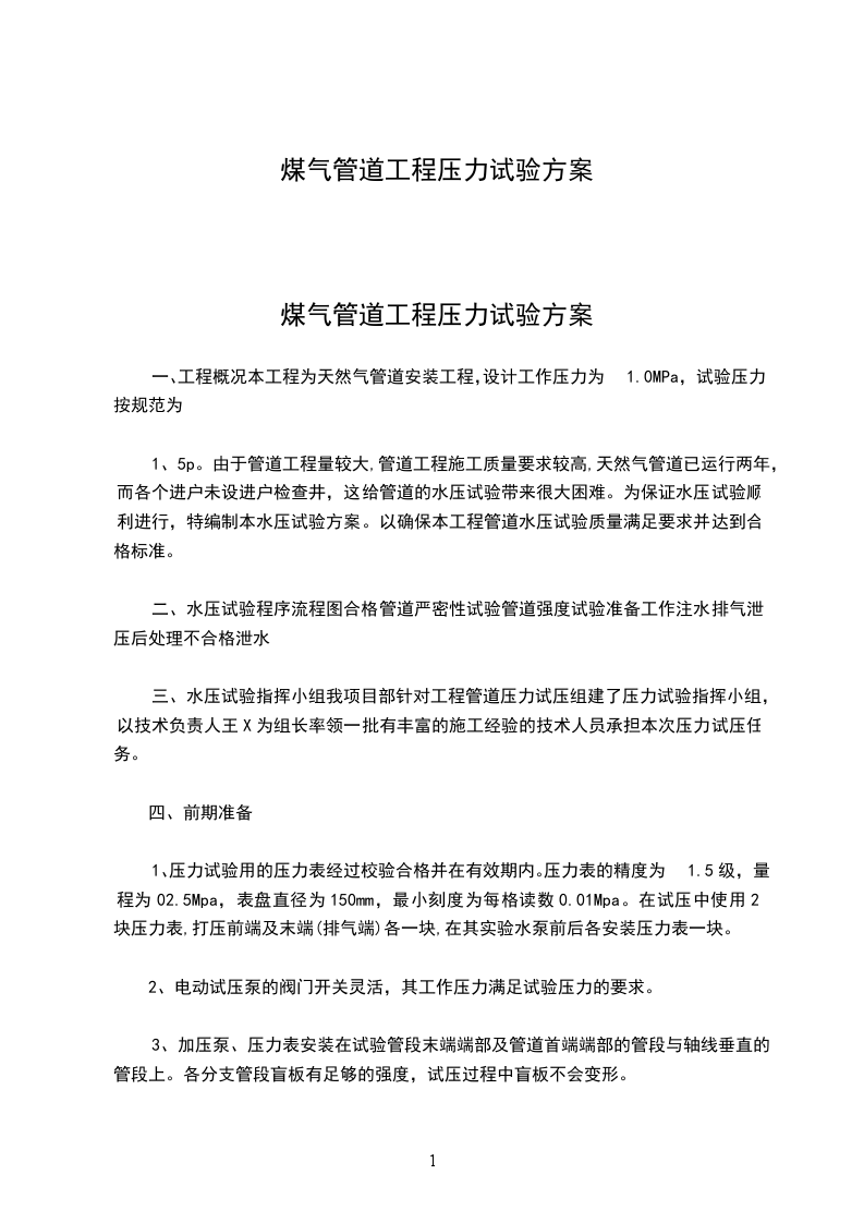 一、工程概况本工程为天然气管道安装工程,设计工作压力为1.0MPa,试验压力按规范为