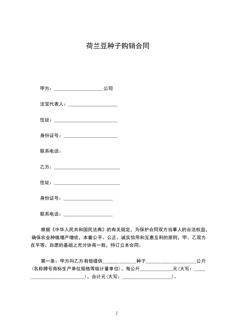 第一条:甲方向乙方有偿提供______________种子_____________________公斤(名称牌号商标生产单位规格等级计量单位),每公斤______________元(大写:____________________________),合计元(大写:_____________________)。