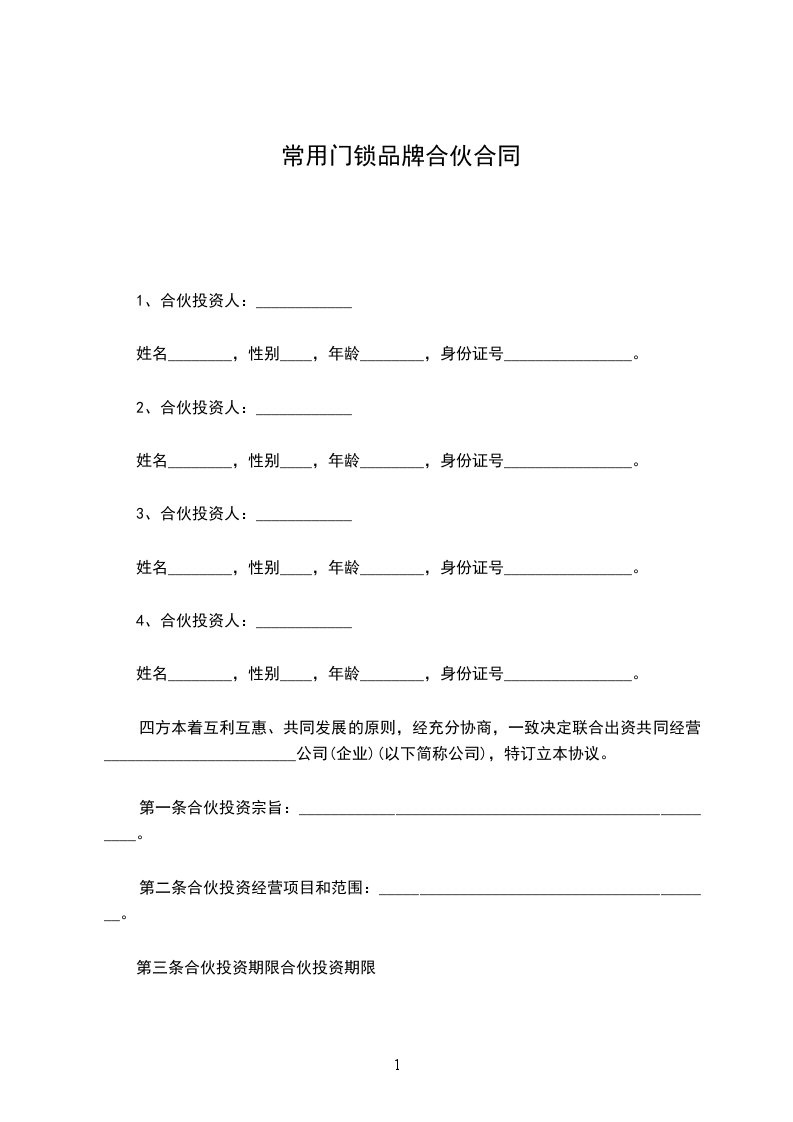 第一条:合伙宗旨