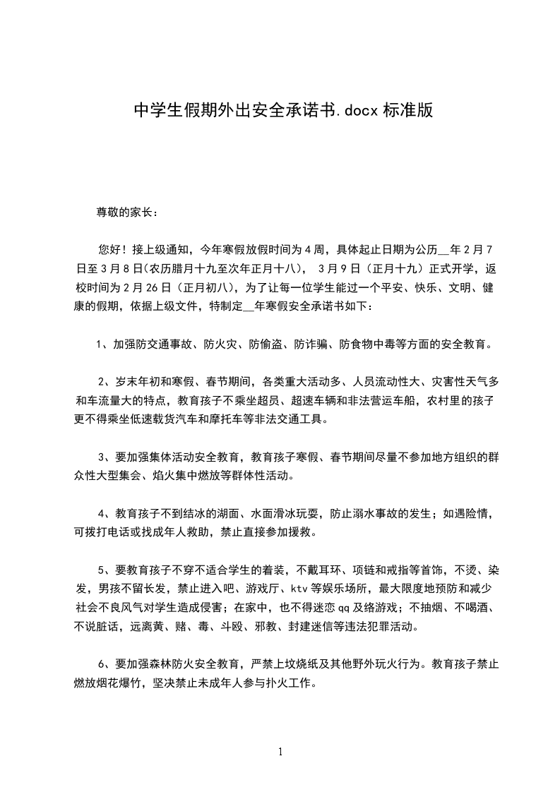 四、注意外出务工活动或返校途中人身财产安全,工作以外绝不在校外逗留滋事。一旦因外出务工活动出现财产损失或人身伤害事故,由本人或务工单位承担。