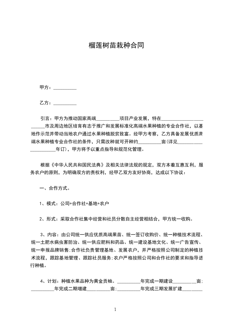 三、乙方责任:乙方在种植前向甲方补助青苗费________元/亩。