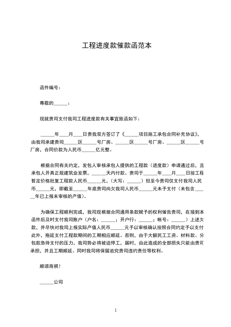 现就贵司支付我司工程进度款有关事宜致函如下: