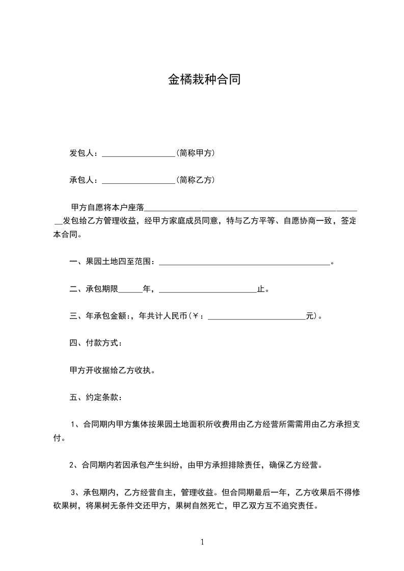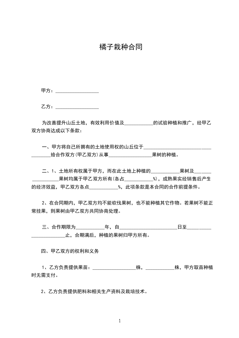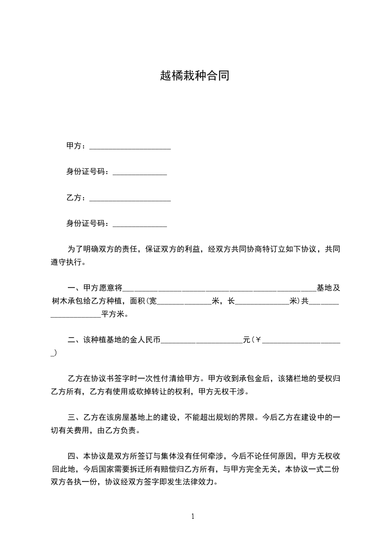 一、甲方愿意将_________________________________________________基地及树木承包给乙方种植,面积(宽______________米,长______________米)共_____________________平方米。