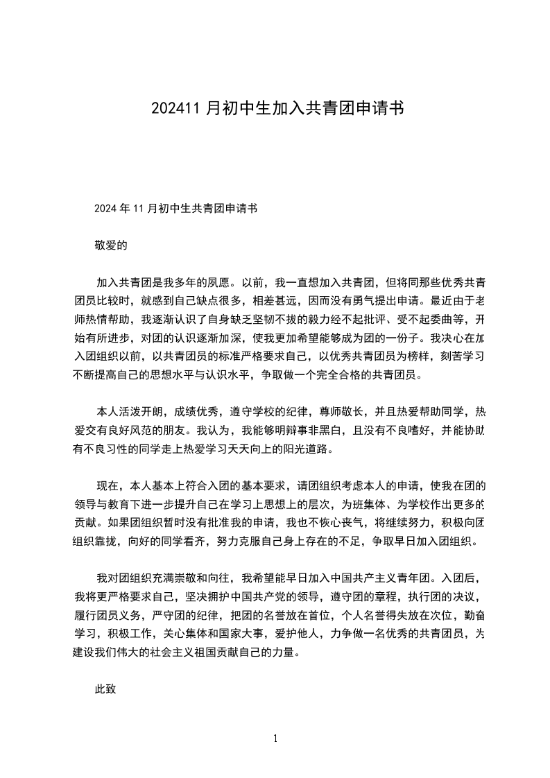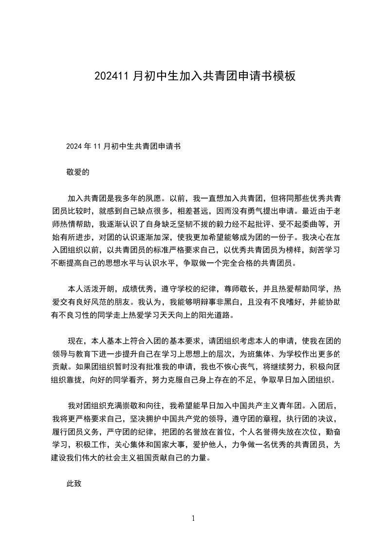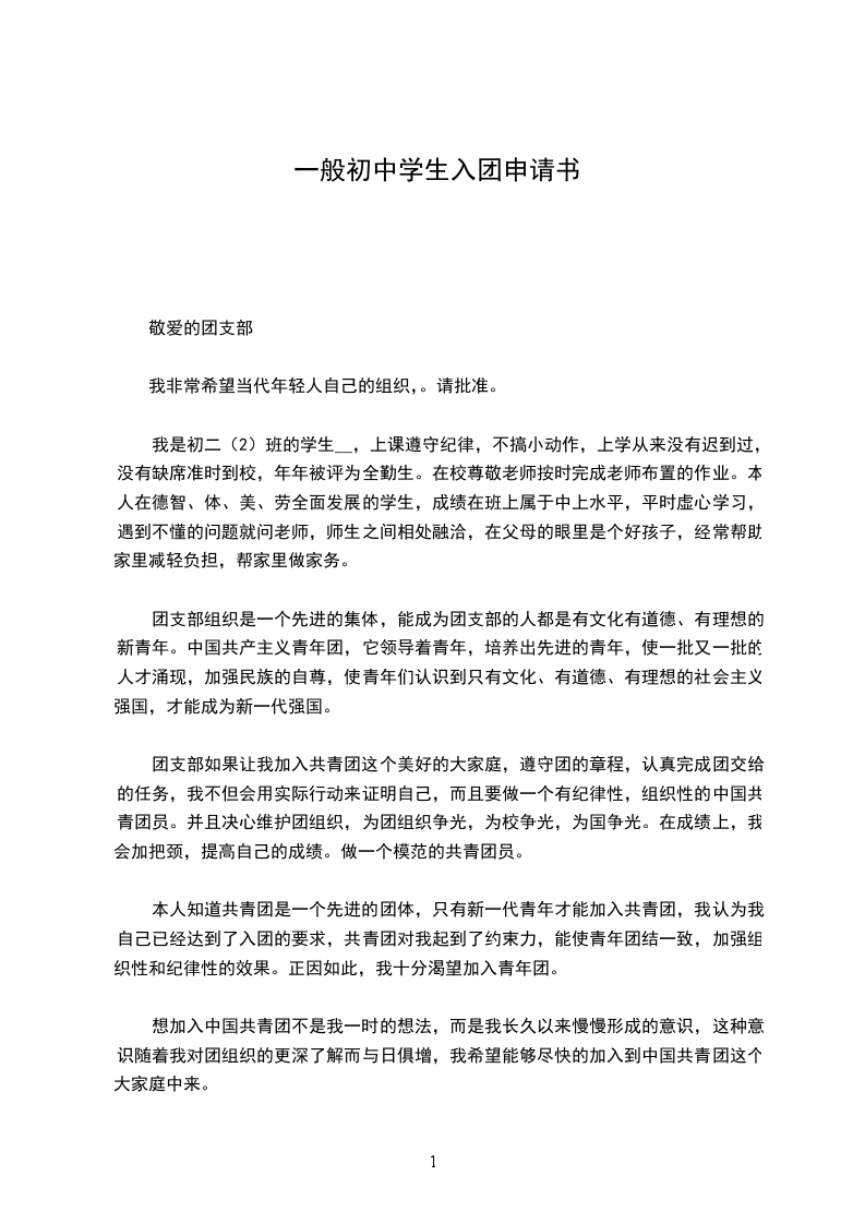 本人知道共青团是一个先进的团体,只有新一代青年才能加入共青团,我认为我自己已经达到了入团的要求,共青团对我起到了约束力,能使青年团结一致,加强组织性和纪律性的效果。正因如此,我十分渴望加入青年团。