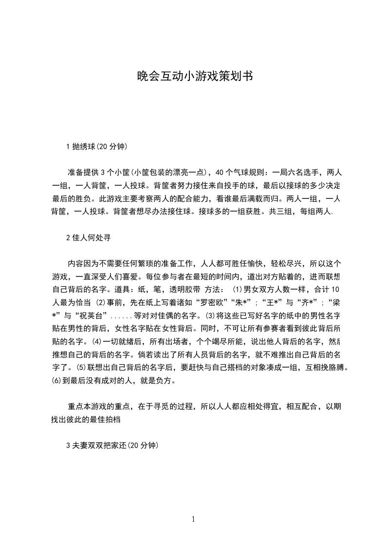 采集物品来自日常的例如眼镜手表、皮带、袜子、口红、钱等,一定要有比较难的放在最后如药片、糖果、一毛钱。另有两款神秘游戏 5\幸运大抽奖 同时在我们晚会的进行中,我们会有很多的抽奖贯穿其中,更多惊喜等着您,相信这个温馨的圣诞之夜会同样有一份好运伴随您。从始至终贯穿抽奖活动(由主持人掌握) 从三等奖到一等奖 准备:不透明抽奖箱,兵乓球10个(用粗笔写号0-9),抽奖号(一式两份,入场观众人手一张),礼仪工作人员,协调抽奖嘉宾。
