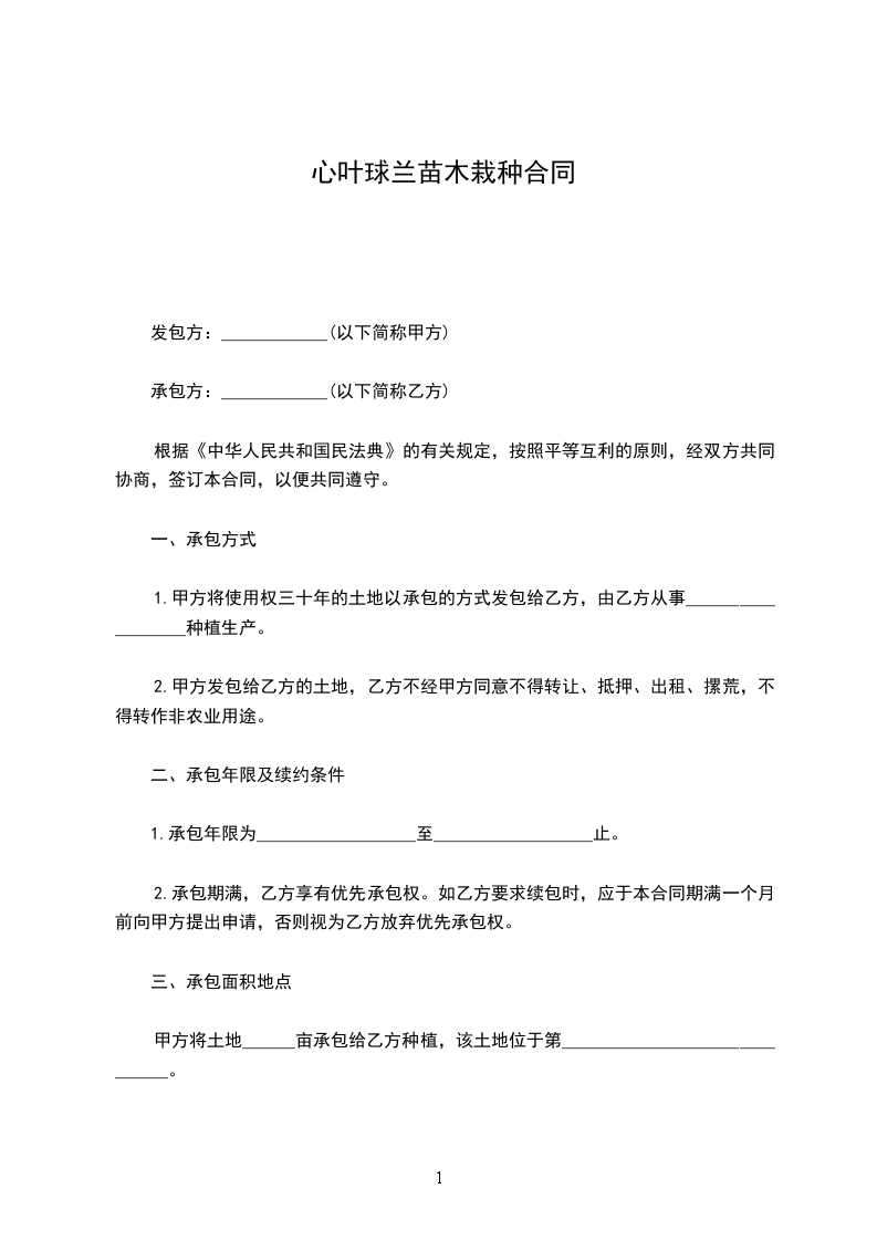 二、合同总价:合同总价为__________元,大写__________元整,最终以实际苗木定植数量为结算依据。