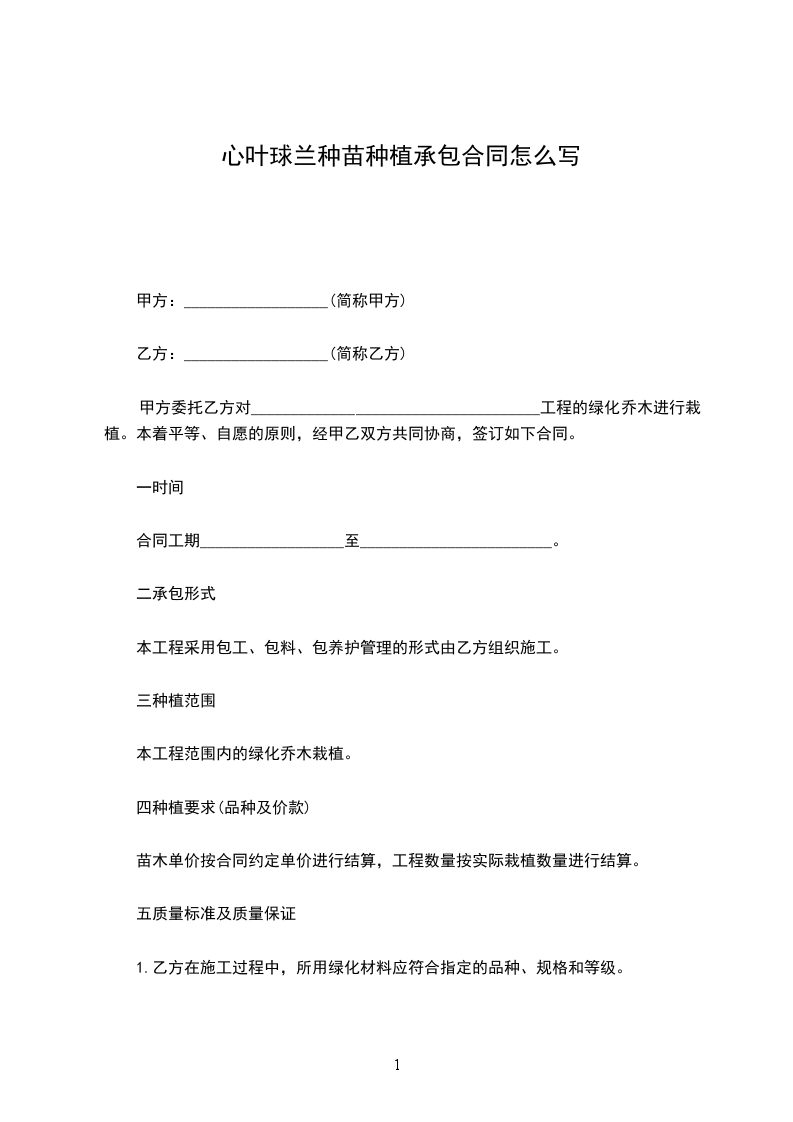 四、质保期限:按照投标文件要求,质保期限_____个月,即____________________初至_______________底。在质保期内,乙方必须及时更换不成活的苗木,确保竣工验收时苗木成活率达100%。