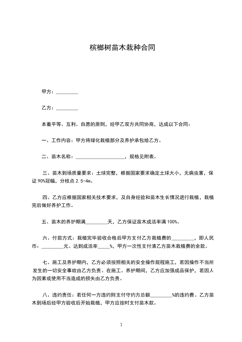 槟榔种苗栽种合同