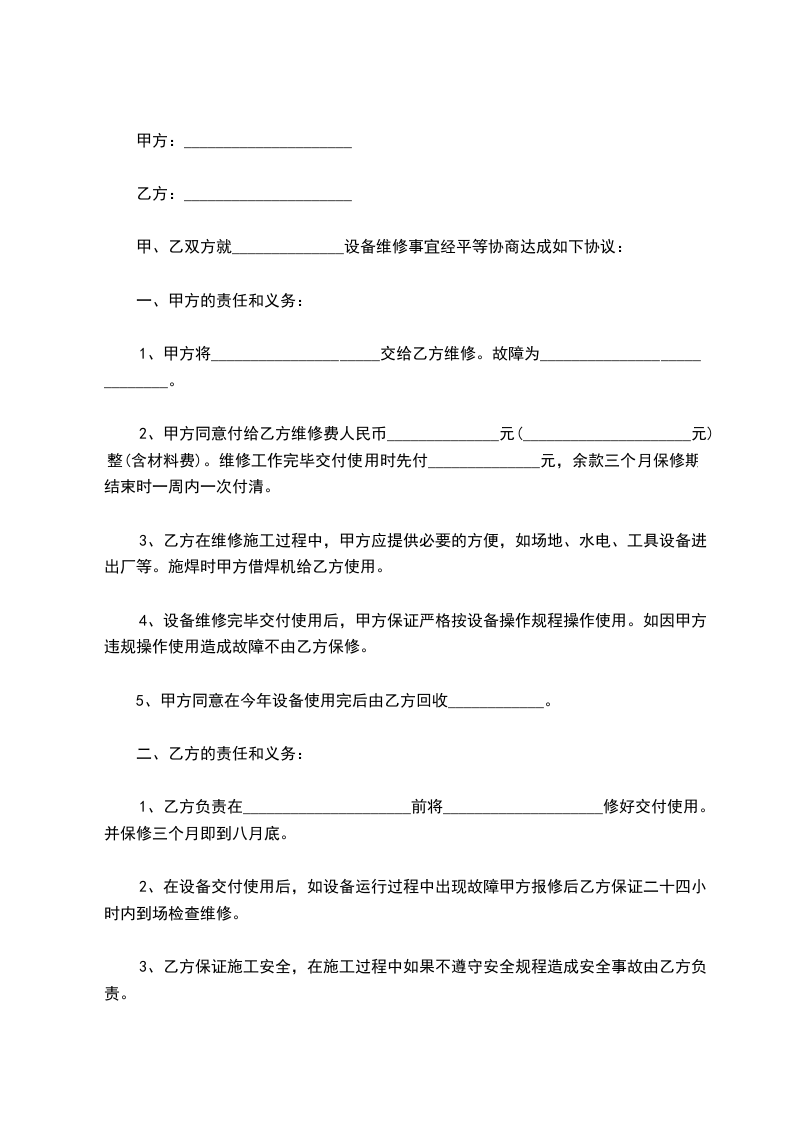 2.乙方对该设备提供自验收合格之日起壹年的保修。保修期内,因甲方用户使用、保管、保养不当或非乙方授权人员维修,以及不可抗力导致的设备故障不在保修范围之内。乙方对合同中的代购产品及赠送产品不提供保修。保修期外及保修范围外,乙方维修只收取材料成本费,免收维修费。