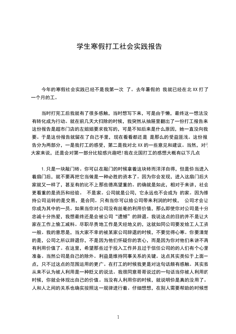 今年的寒假社会实践已经不是我第一次 了。去年暑假的 我就已经在北XX打了一个月的工。