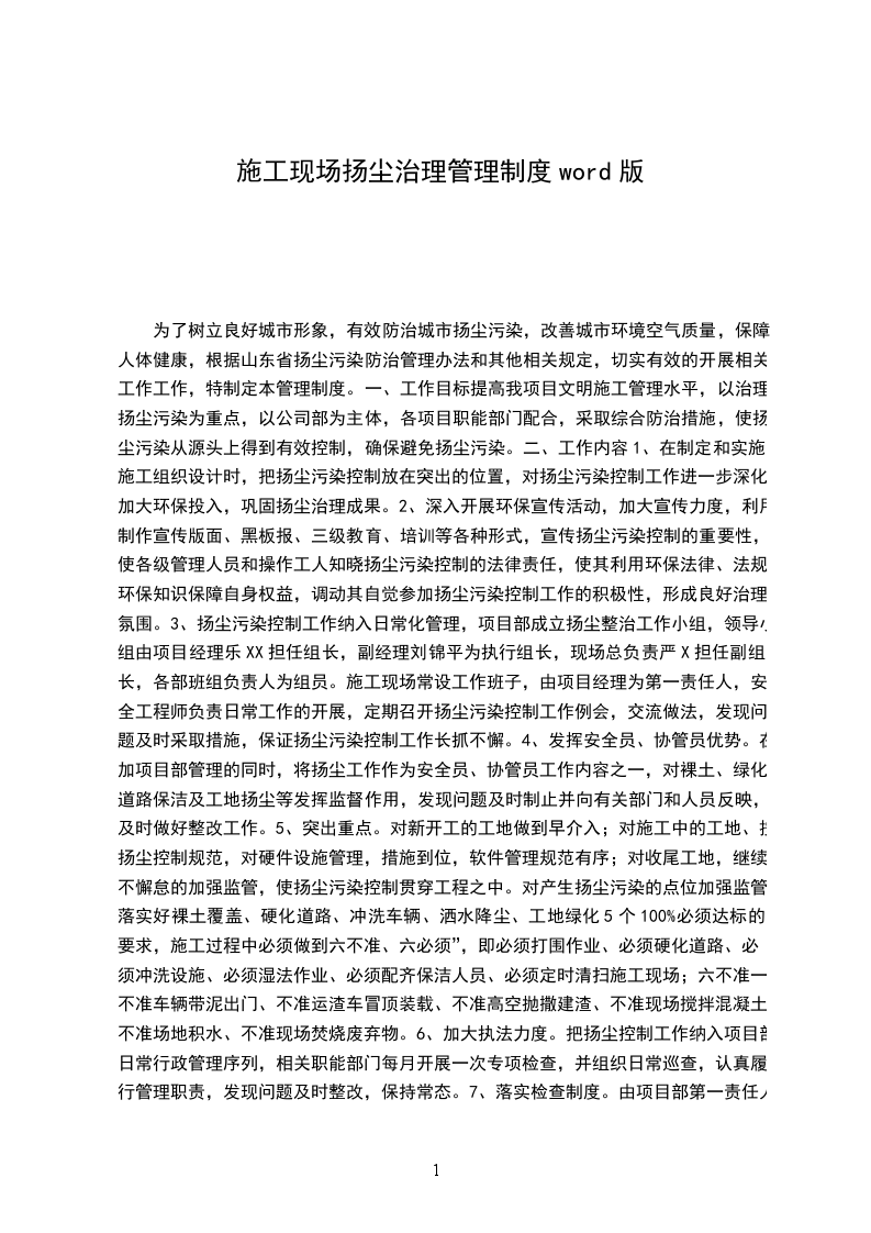 1、项目经理是施工扬尘污染控制的第一责任人,须对施工现场的扬尘污染控制负全面责任;