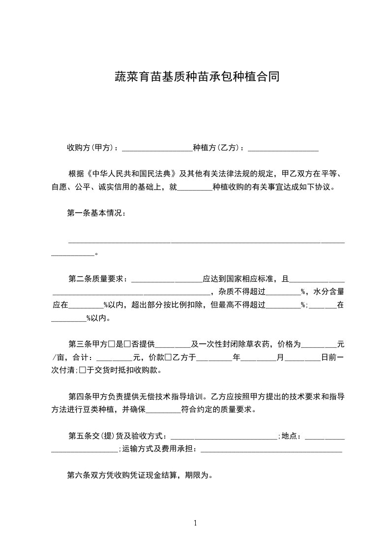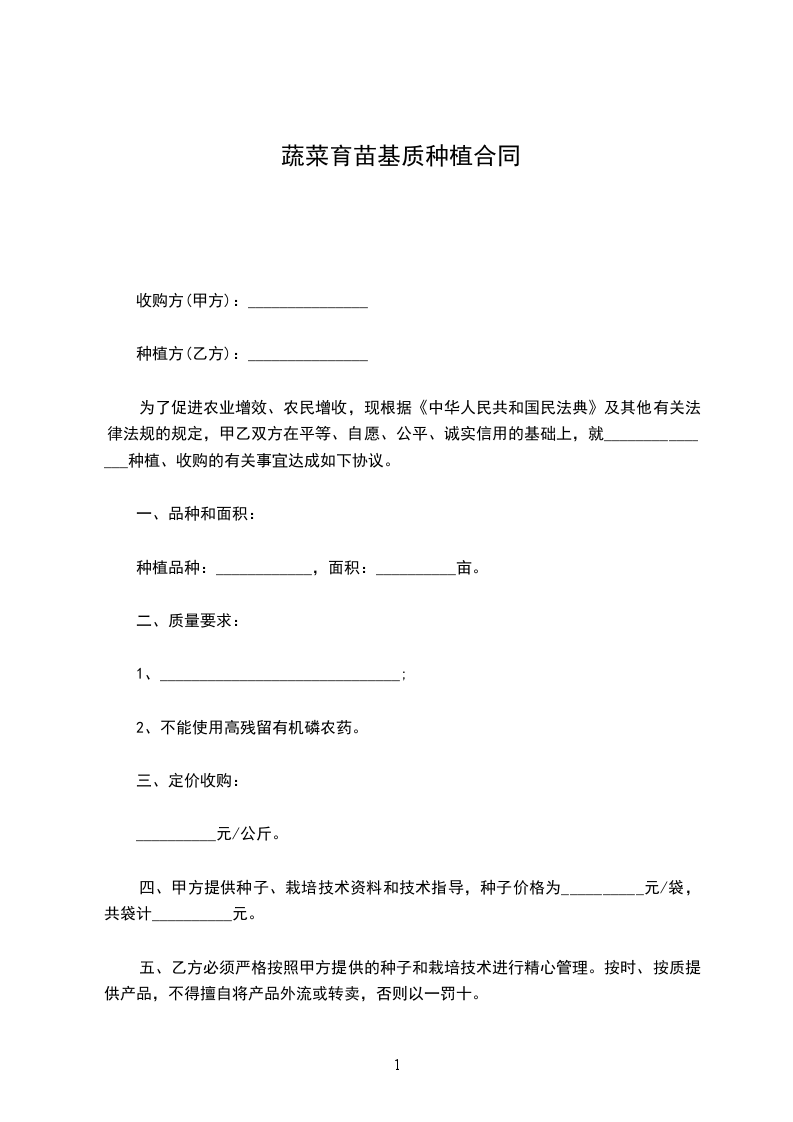 为了促进农业增效、农民增收,现根据《中华人民共和国民法典》及其他有关法律法规的规定,甲乙双方在平等、自愿、公平、诚实信用的基础上,就_______________种植、收购的有关事宜达成如下协议。