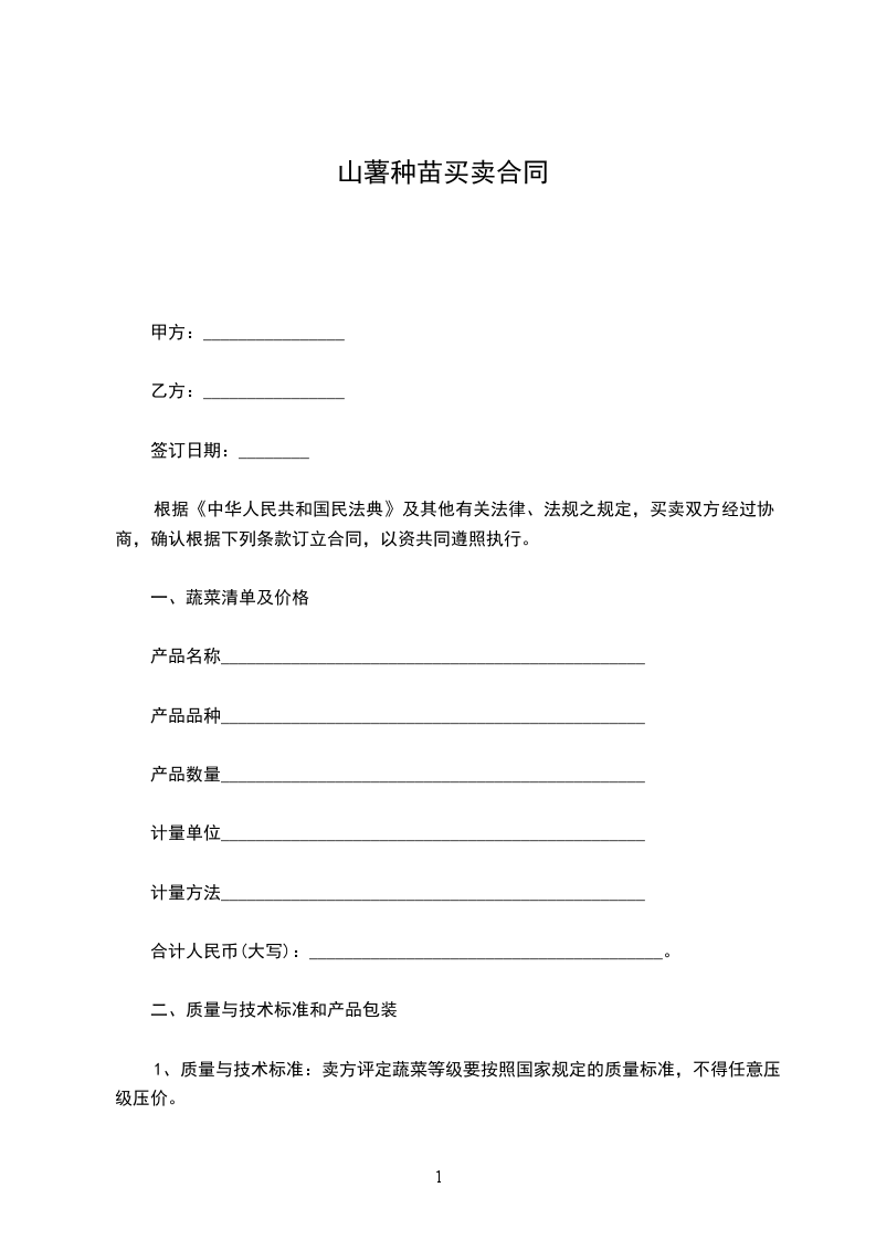 1、质量与技术标准:卖方评定蔬菜等级要按照国家规定的质量标准,不得任意压级压价。