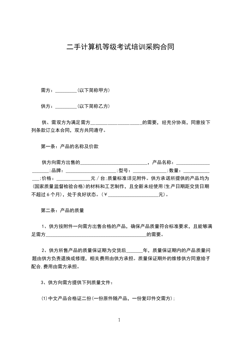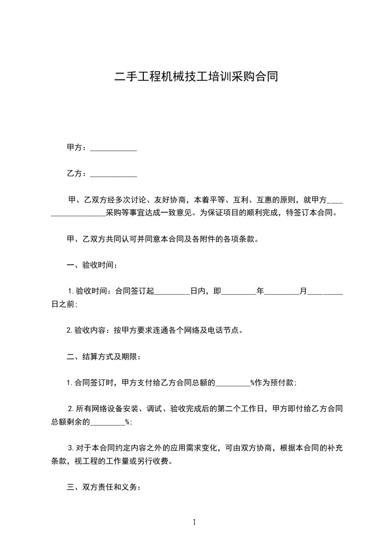 1、验收时间:卖方应于合同生效后天内完成设备安装调试,安装调试完毕后,买方应在天内安排初步验收。设备于合同生效后天内通过双方的合格验收并由买方出具验收合格书。