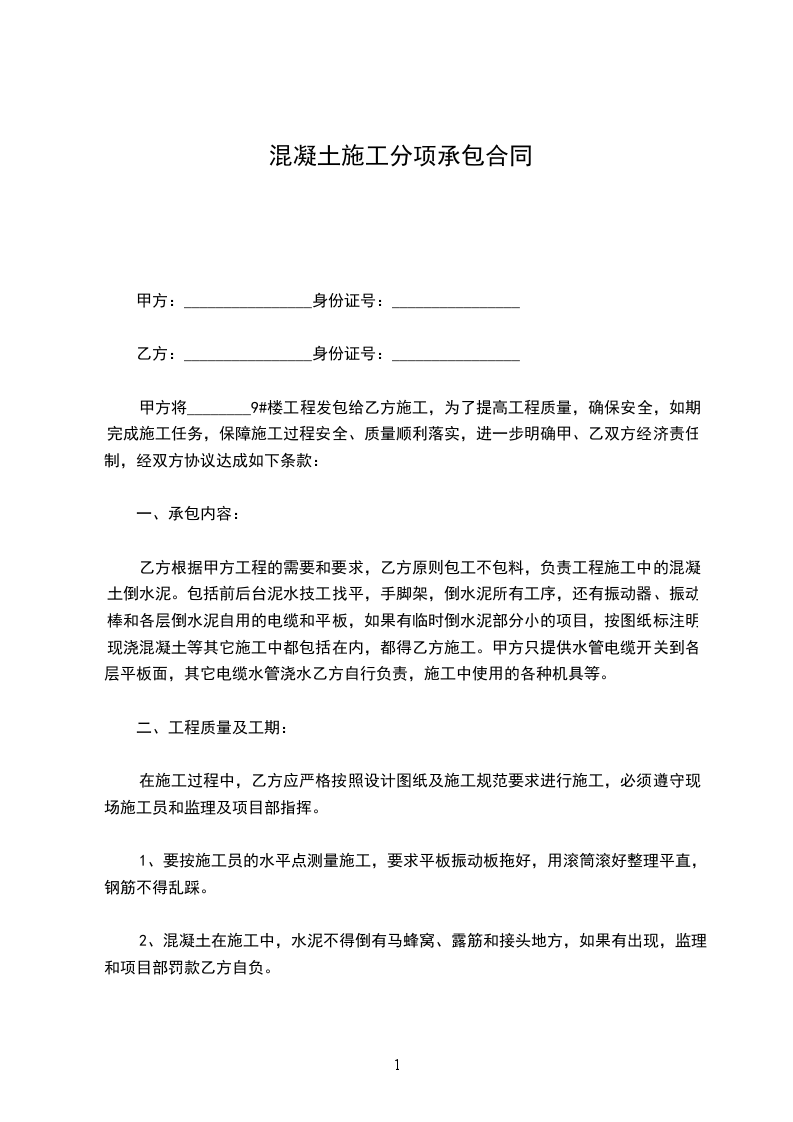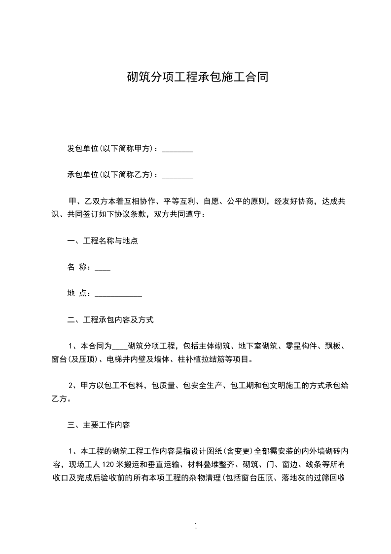 甲方承建的_________________工程模板分项工程,于_________年_________月_________日,由甲方发包给乙方施工。为了明确工程内容及双方责任,本着互相协助及分工负责等原则,根据本工程的情况,特商定如下条款,共同遵守执行: