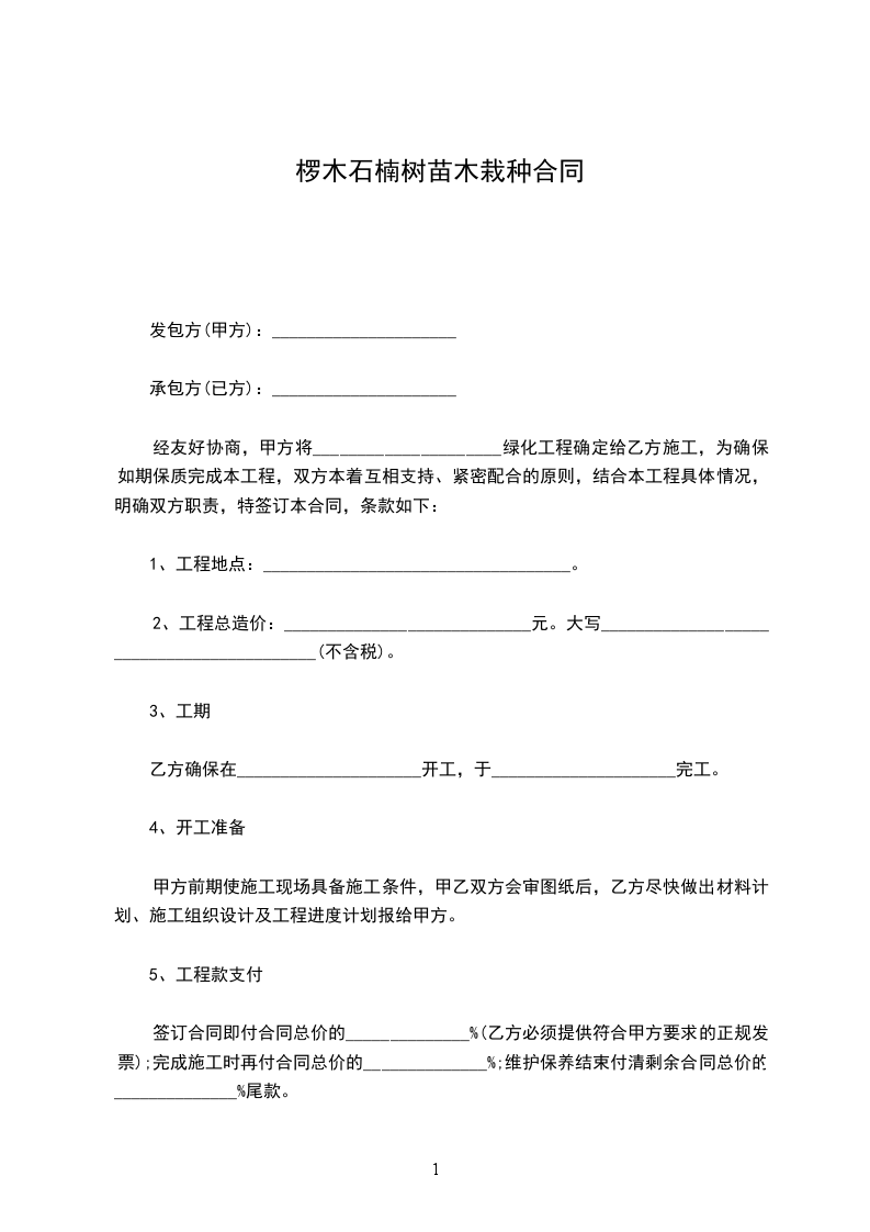 经友好协商,甲方将_____________________绿化工程确定给乙方施工,为确保如期保质完成本工程,双方本着互相支持、紧密配合的原则,结合本工程具体情况,明确双方职责,特签订本合同,条款如下: