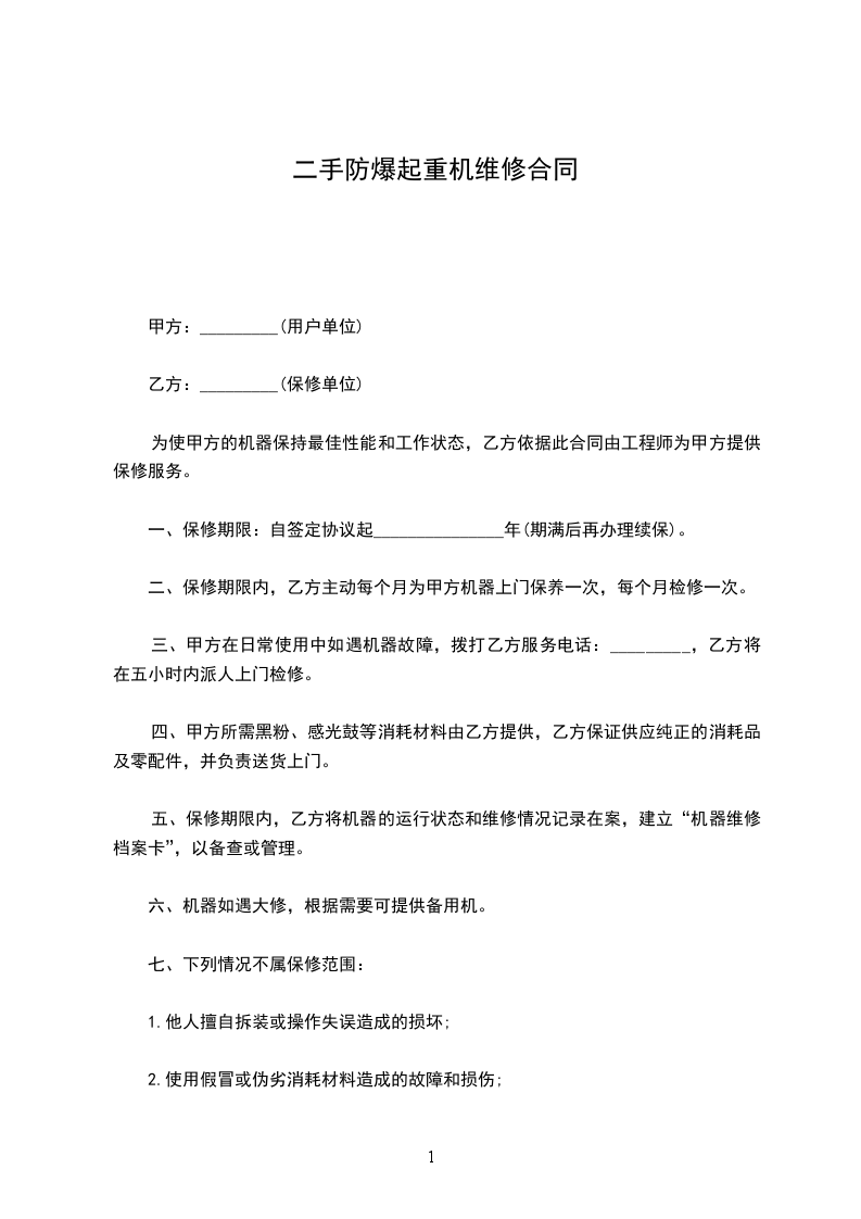 2、乙方对质量负责的条件和期限:设备质量保证期(下称"质保期")为自验收合格之日起______________个月,质保期内乙方负责三包(包修、包退、包换)。超过质保期,乙方有协助甲方对该设备进行维修,同时为甲方提供备件供应、技术支持等义务,相关费用另行协商。