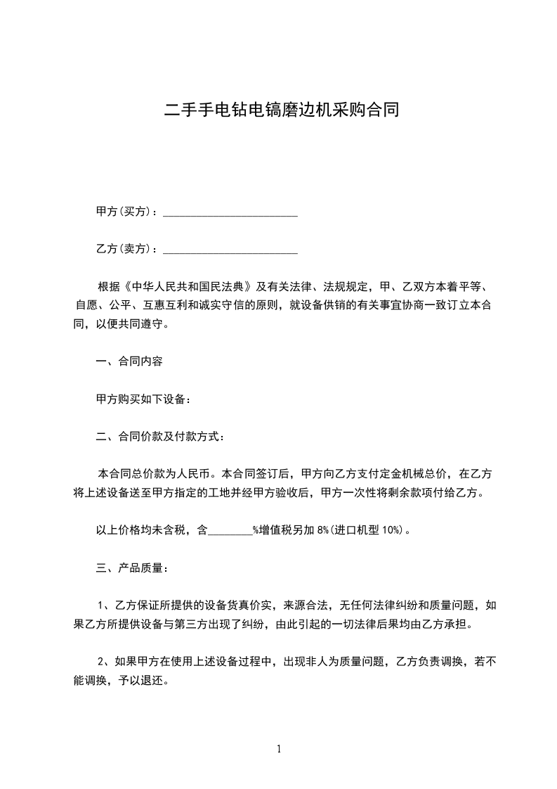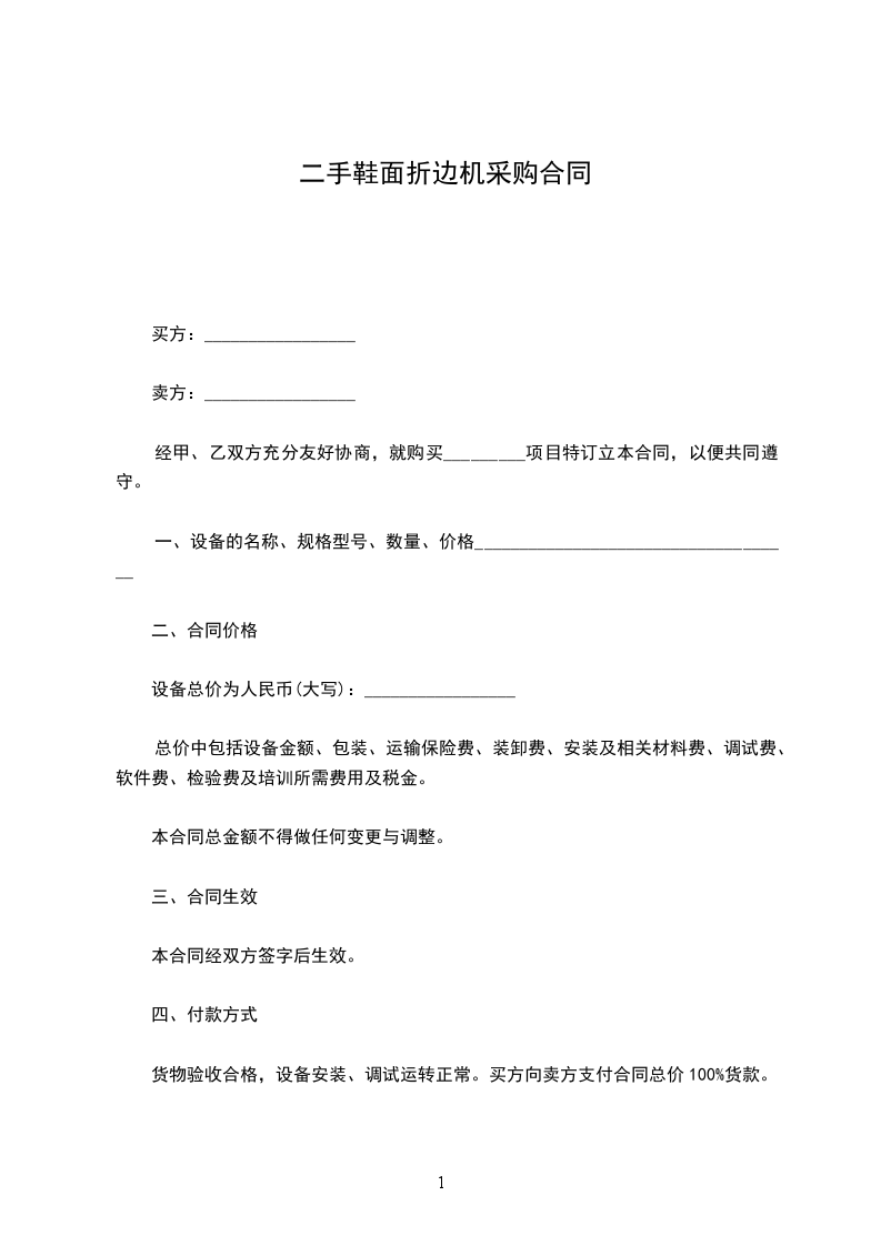 五、付款方式:合同签订后,甲方先付合同款的______%订金,货到指定交货地点时再交付合同款的______%,剩余尾款在安装验收完毕______个工作日内付清。