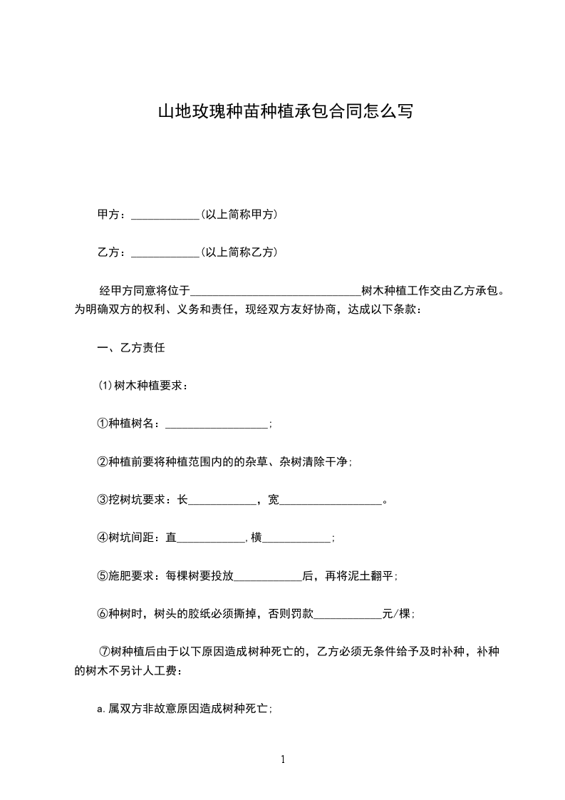 山地玫瑰苗木种植合同