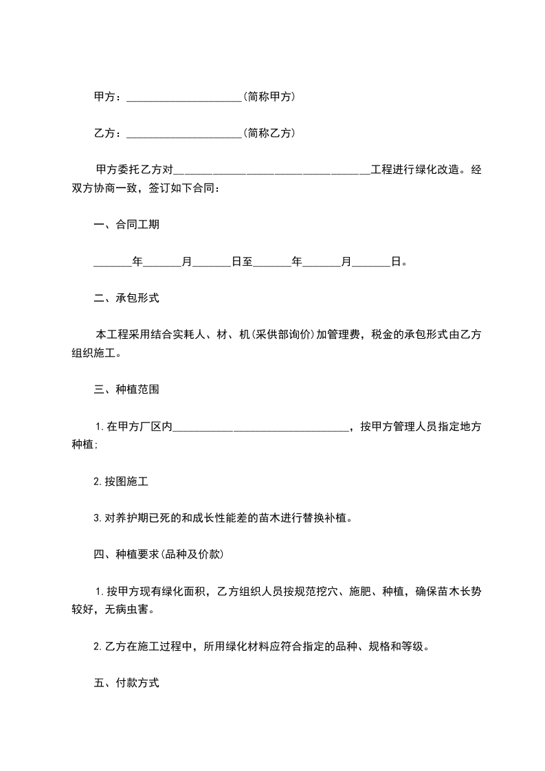 经甲方同意将位于______________________________树木种植工作交由乙方承包。为明确双方的权利、义务和责任,现经双方友好协商,达成以下条款: