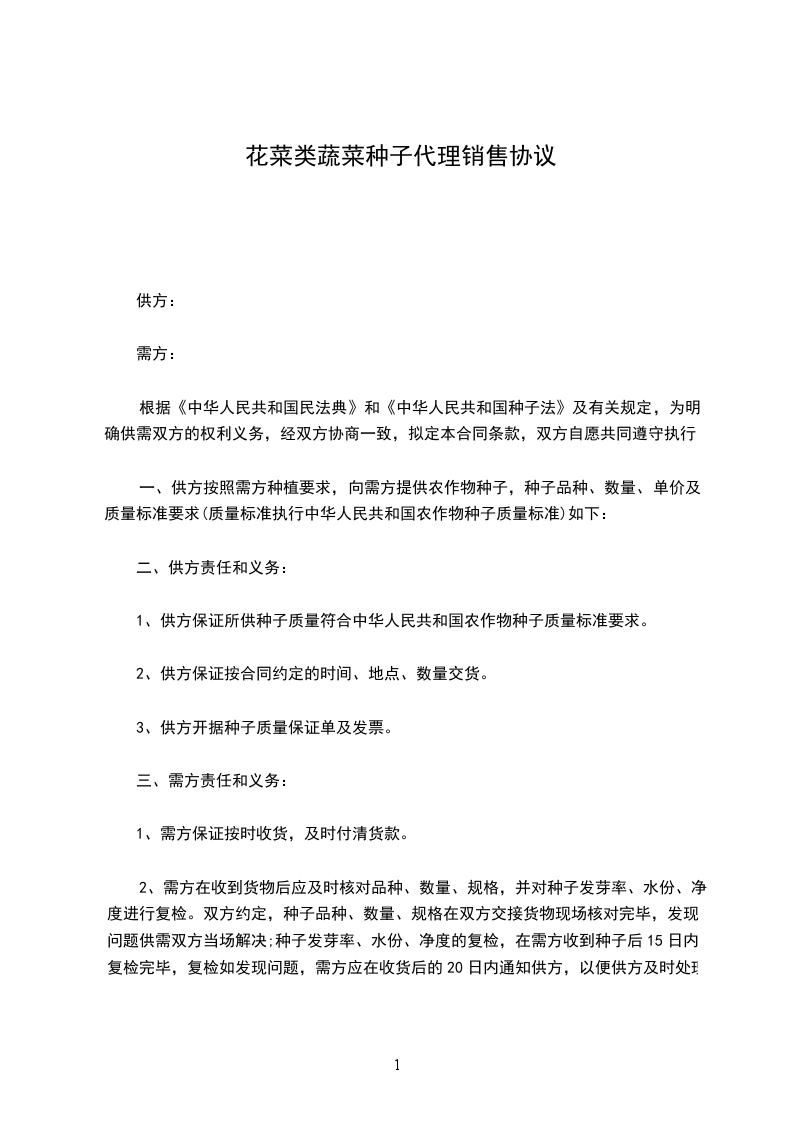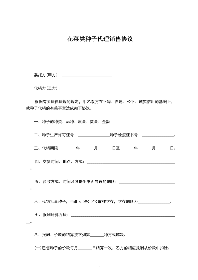 一、乙方生产负责人__________负责(地区)的种植生产。甲方负责向______________提供优质种子及种植生产的技术咨询和收购。