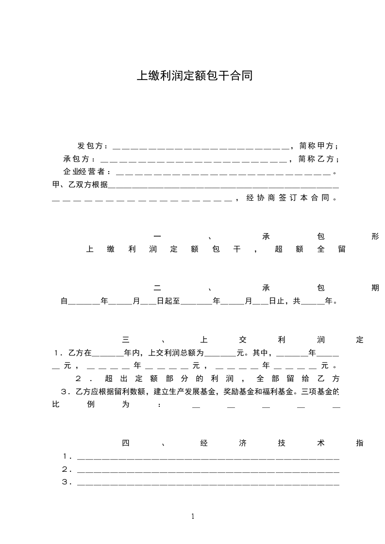 1.乙方在____年内,上交利润总额为____元。其中,____年____元,____年____元,____年____元。