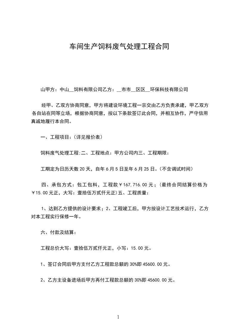 山甲方:中山__饲料有限公司乙方:__市市__区区__环保科技有限公司