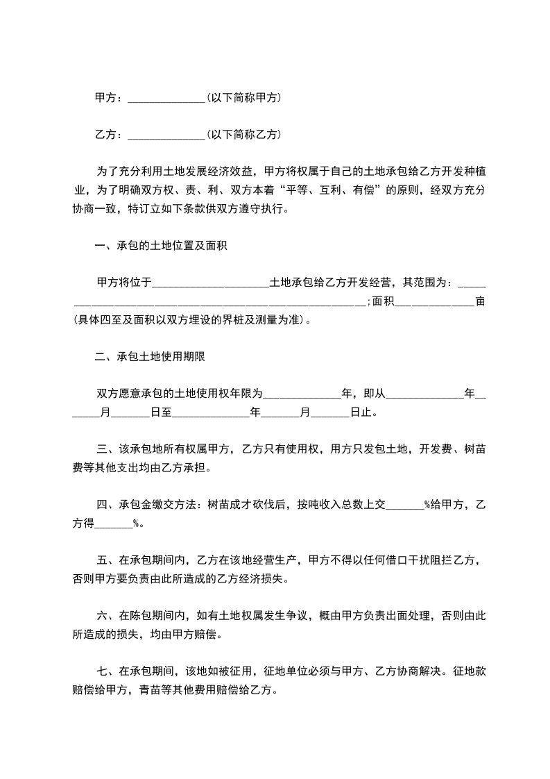 承包方(乙方):____________________(以下简称乙方)